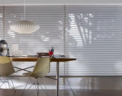 Window Shadings are available in 2 “, 2 1/2″, and 3 1/2” vein sizes. These beautiful shades come in translucent and light dimming veins. When the shade is open it filters 88% of harmful UV rays and up to 99% when closed. When raised, they completely disappear into the headrail.